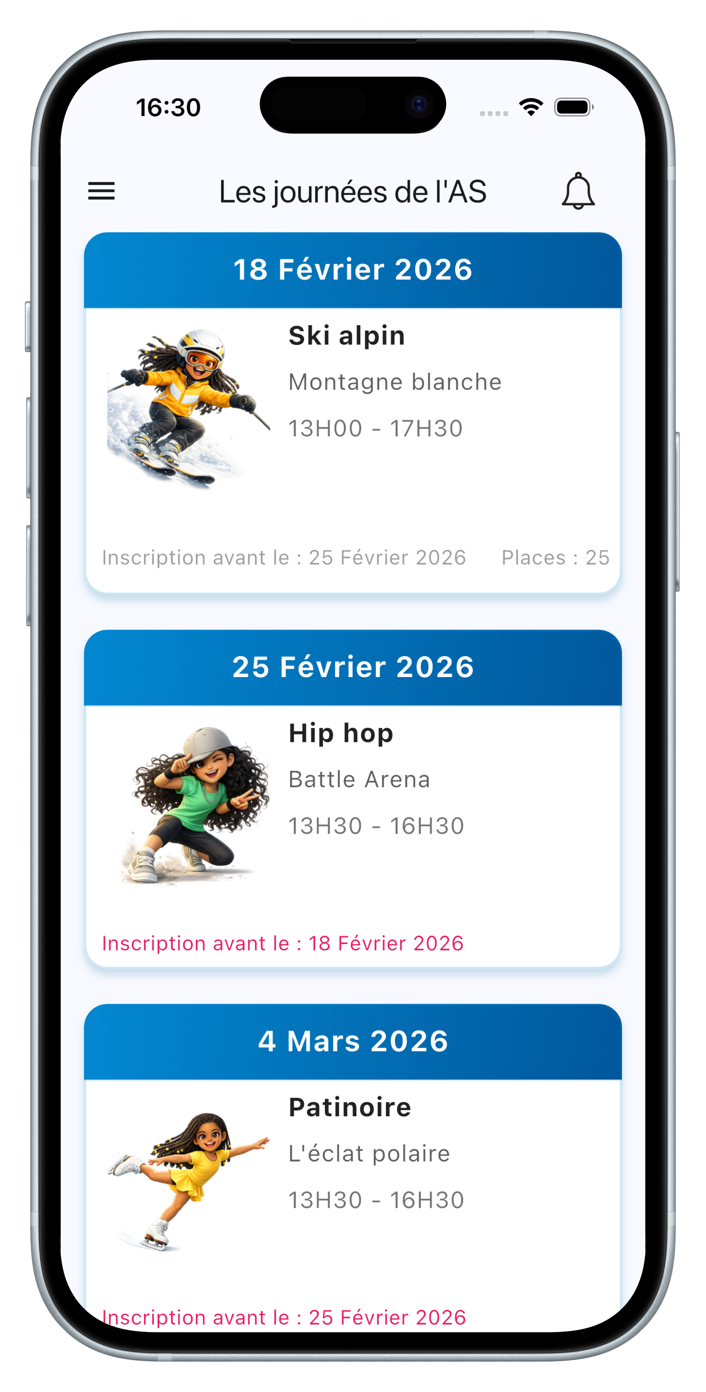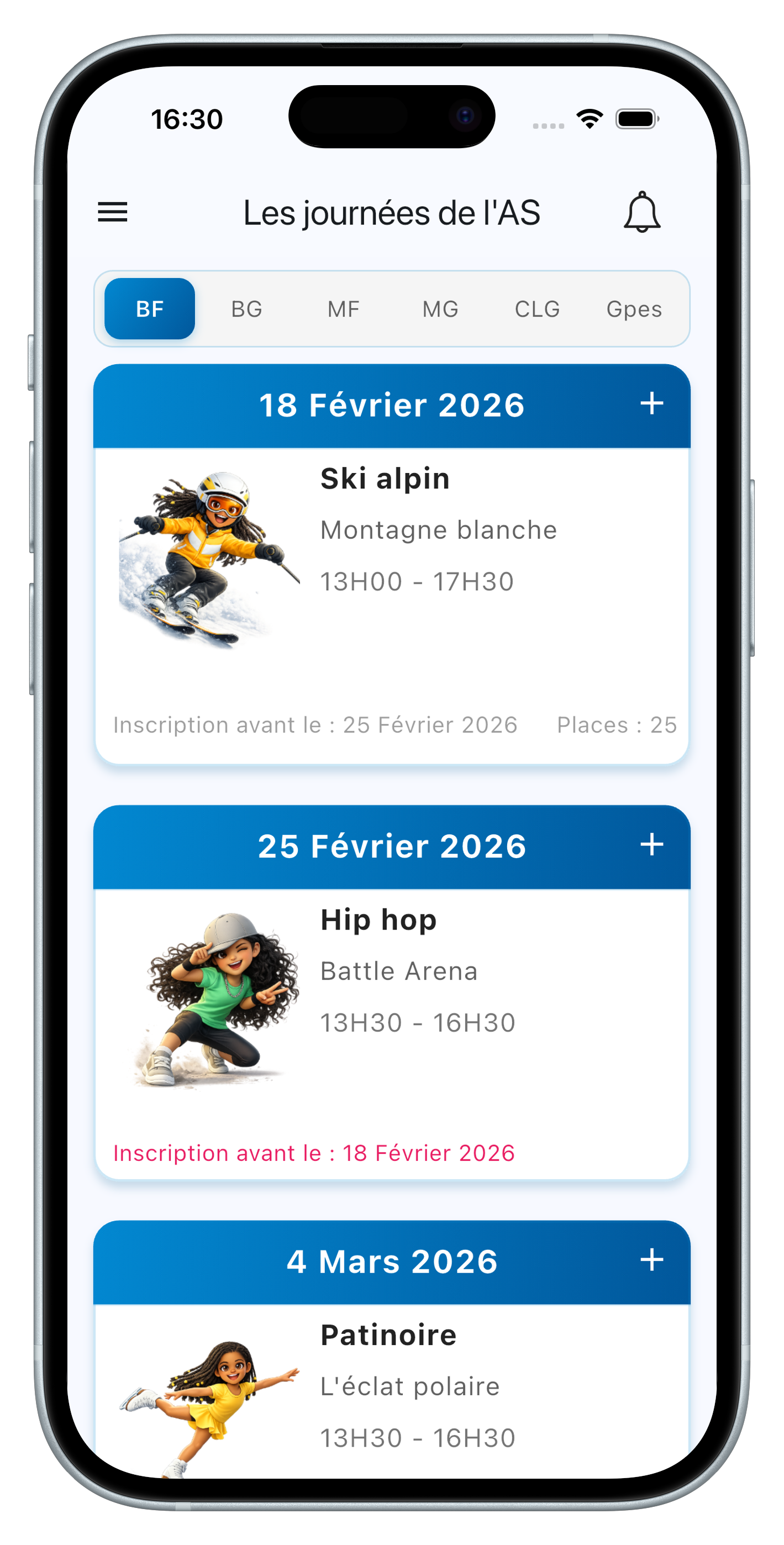 Les élèves reçoivent l’information instantanément et s’inscrivent directement depuis l’application 📱